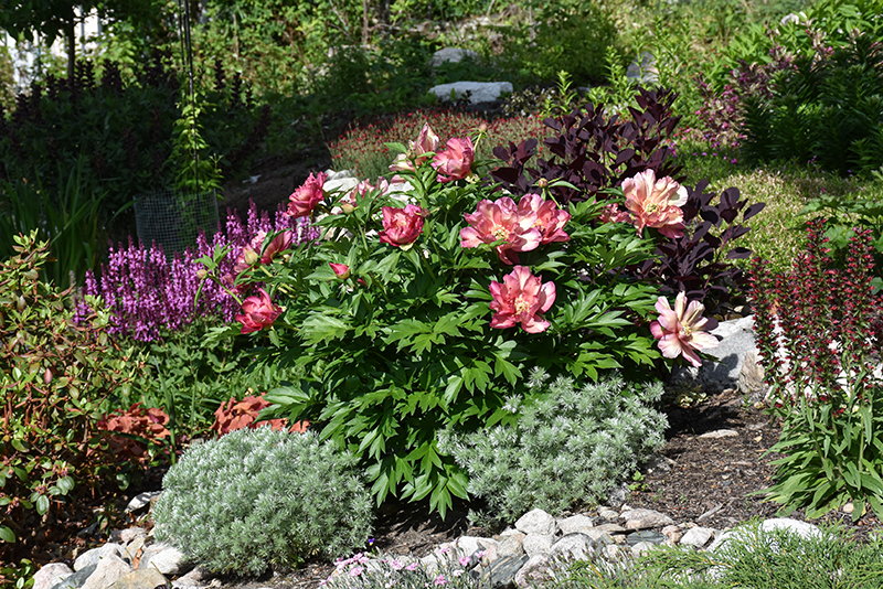 Julia Rose Peony is an herbaceous perennial with a mounded form. Its medium texture blends into the garden, but can always be balanced by a couple of finer or coarser plants for an effective composition.