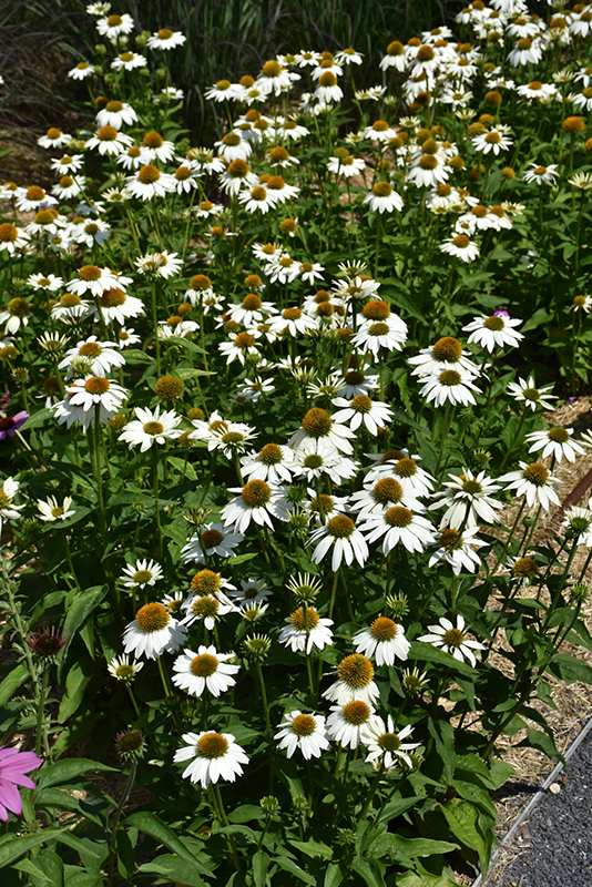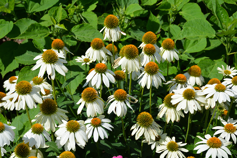 This attractive echinacea produces large pure white flowers with coppery centers; a perfect choice for planting in groups, along border edges, or in containers; great for flower arrangements, attracts pollinators