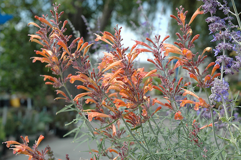 Sunset Hyssop features airy spikes of lightly-scented orange tubular flowers with lavender calyces rising above the foliage from mid summer to mid fall. The flowers are excellent for cutting. Its attractive fragrant pointy leaves remain grayish green in colour with hints of silver throughout the season.