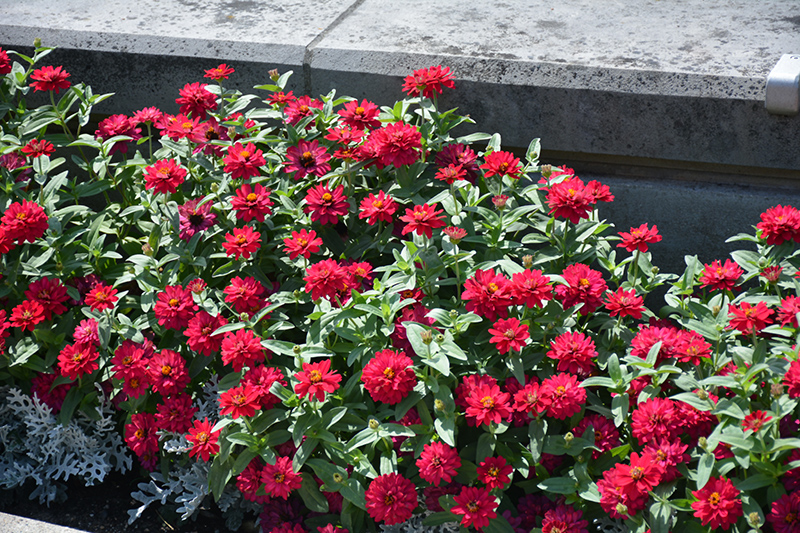 Profusion Double Hot Cherry Zinnia is a fine choice for the garden, but it is also a good selection for planting in outdoor containers and hanging baskets. It is often used as a 'filler' in the 'spiller-thriller-filler' container combination, providing a mass of flowers against which the larger thriller plants stand out. Note that when growing plants in outdoor containers and baskets, they may require more frequent waterings than they would in the yard or garden.