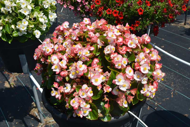 Super Olympia Bicolor Begonia is a fine choice for the garden, but it is also a good selection for planting in outdoor containers and hanging baskets. It is often used as a 'filler' in the 'spiller-thriller-filler' container combination, providing a mass of flowers against which the thriller plants stand out. Note that when growing plants in outdoor containers and baskets, they may require more frequent waterings than they would in the yard or garden.