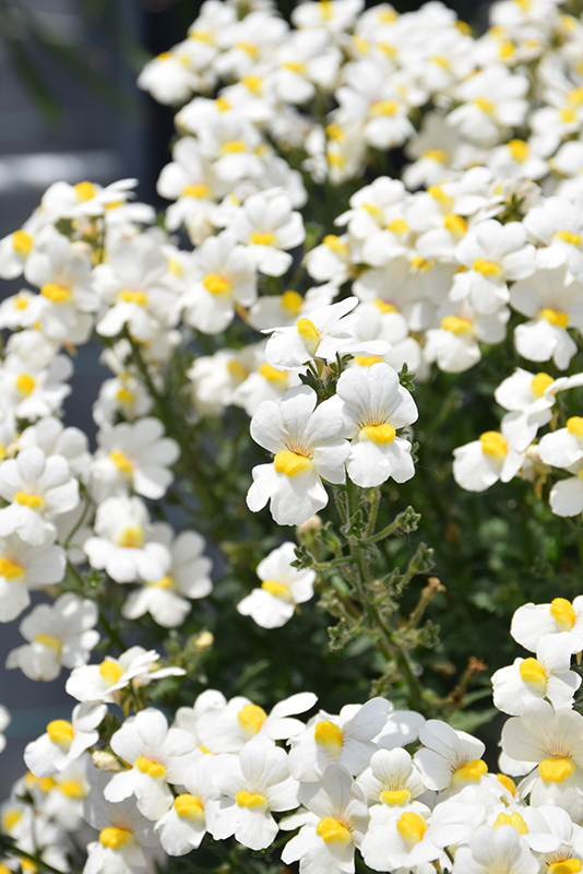Sunsatia Coconut Nemesia is a fine choice for the garden, but it is also a good selection for planting in outdoor containers and hanging baskets. It is often used as a 'filler' in the 'spiller-thriller-filler' container combination, providing a mass of flowers against which the larger thriller plants stand out. Note that when growing plants in outdoor containers and baskets, they may require more frequent waterings than they would in the yard or garden.