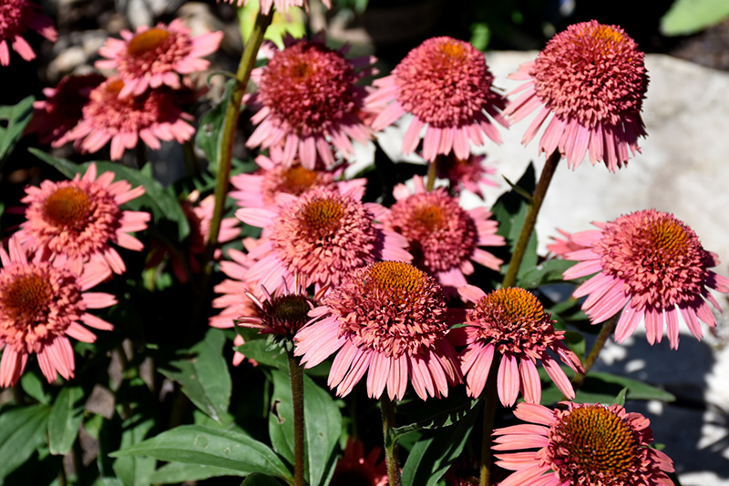 Supreme Flamingo Coneflower has masses of beautiful lightly-scented double coral-pink daisy flowers with burgundy eyes at the ends of the stems from mid summer to early fall, which are most effective when planted in groupings. The flowers are excellent for cutting. Its pointy leaves remain green in colour throughout the season.