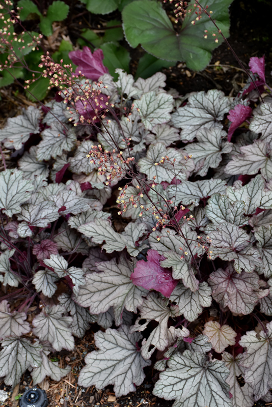 Spellbound Coral Bells will grow to be about 10 inches tall at maturity extending to 18 inches tall with the flowers, with a spread of 16 inches. When grown in masses or used as a bedding plant, individual plants should be spaced approximately 12 inches apart. Its foliage tends to remain low and dense right to the ground. It grows at a medium rate, and under ideal conditions can be expected to live for approximately 10 years. As an evegreen perennial, this plant will typically keep its form and foliage year-round.