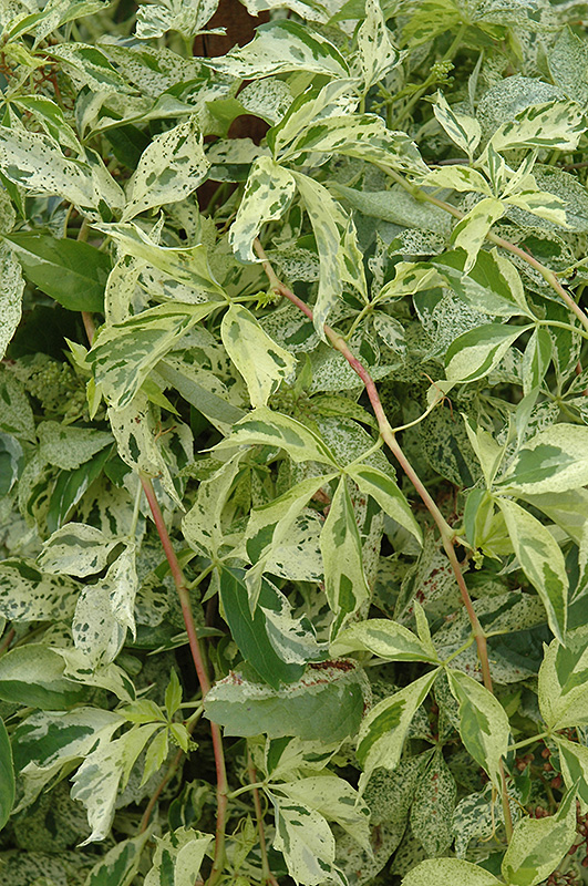 Star Showers Virginia Creeper has attractive white-variegated green foliage on a plant with a spreading habit of growth. The serrated palmate leaves are highly ornamental but do not develop any appreciable fall colour.