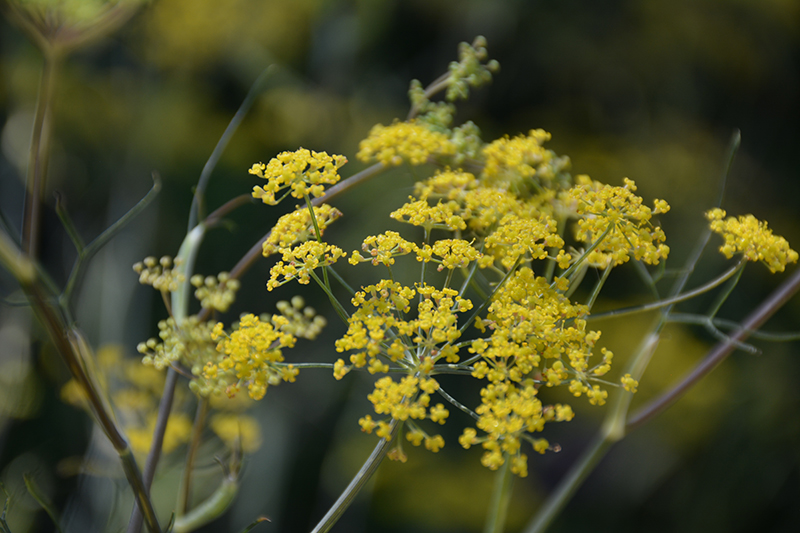 Bronze Fennel has masses of beautiful yellow flat-top flowers held atop the stems in mid summer, which are most effective when planted in groupings. The flowers are excellent for cutting. Its attractive fragrant ferny leaves emerge burgundy in spring, turning bluish-green in colour with showy coppery-bronze variegation and tinges of purple throughout the season.