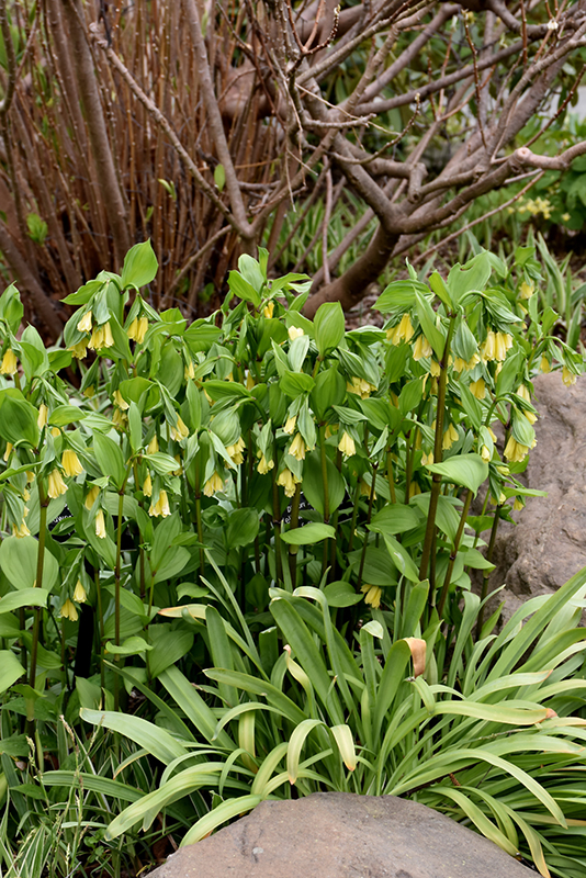 This plant produces pendulous yellow bells that become more showy as the clump matures; bright green, ovate foliage is attractive; excellent for woodlands or shaded borders