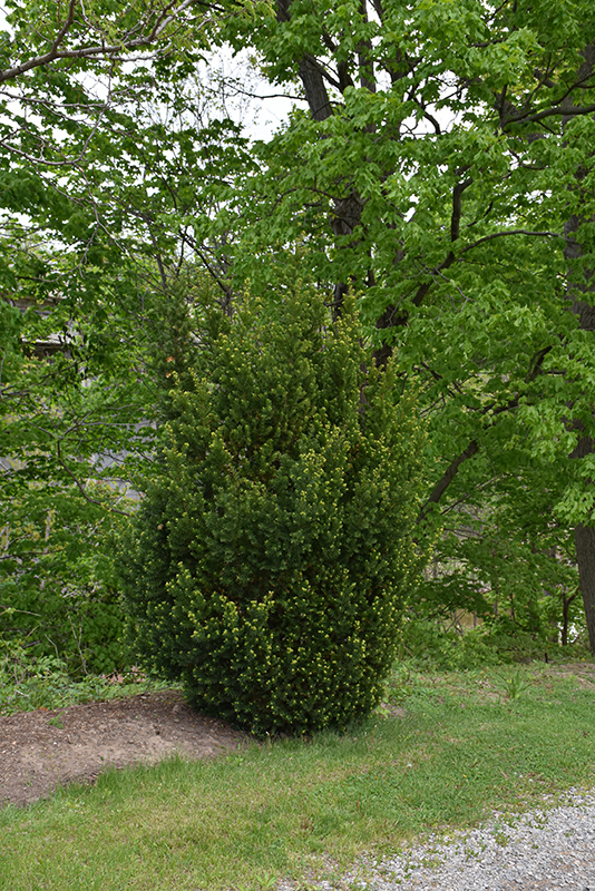 A choice evergreen landscape shrub with an upright oval to pyramidal habit, bright green emerging foliage is held against dark evergreen needles in spring; makes a great upright hedge, takes pruning very well; one of the few evergreens that loves shade