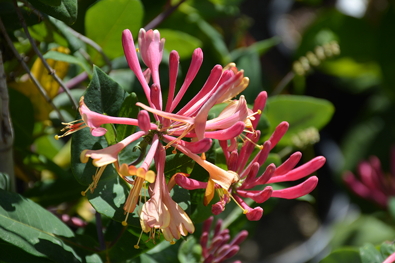 Goldflame Honeysuckle is a multi-stemmed deciduous woody vine with a twining and trailing habit of growth. Its average texture blends into the landscape, but can be balanced by one or two finer or coarser trees or shrubs for an effective composition.