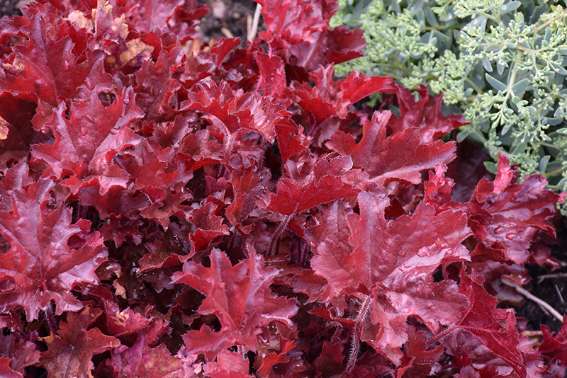 Dolce® Cherry Truffles Coral Bells will grow to be about 10 inches tall at maturity extending to 20 inches tall with the flowers, with a spread of 28 inches. When grown in masses or used as a bedding plant, individual plants should be spaced approximately 26 inches apart. Its foliage tends to remain low and dense right to the ground. It grows at a medium rate, and under ideal conditions can be expected to live for approximately 10 years. As an evegreen perennial, this plant will typically keep its form and foliage year-round.