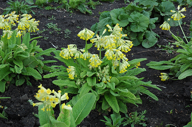 English Cowslip will grow to be only 4 inches tall at maturity extending to 10 inches tall with the flowers, with a spread of 8 inches. When grown in masses or used as a bedding plant, individual plants should be spaced approximately 6 inches apart. Its foliage tends to remain low and dense right to the ground. It grows at a fast rate, and under ideal conditions can be expected to live for approximately 5 years. As an herbaceous perennial, this plant will usually die back to the crown each winter, and will regrow from the base each spring. Be careful not to disturb the crown in late winter when it may not be readily seen!