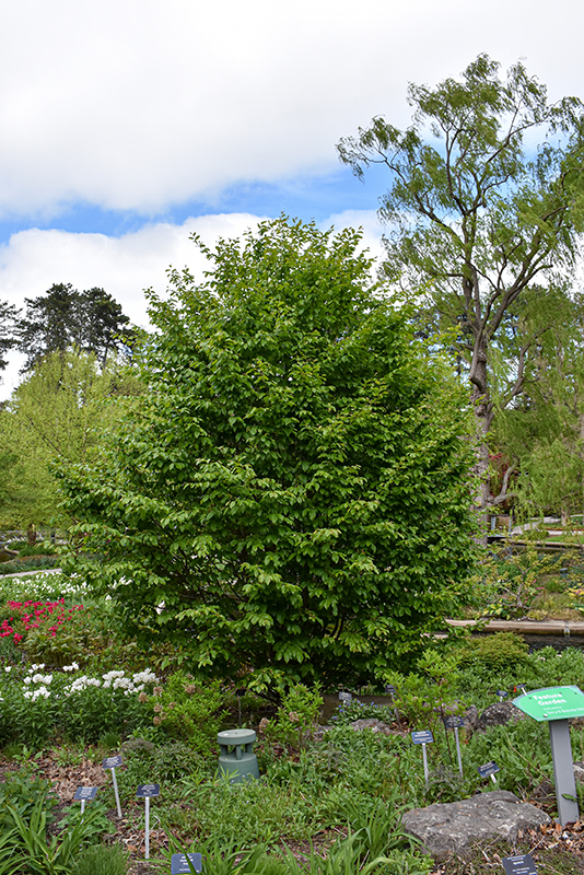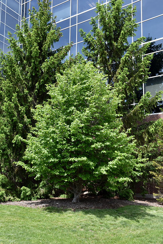 Vanessa Parrotia is primarily valued in the landscape for its distinctively pyramidal habit of growth. It has forest green deciduous foliage which emerges burgundy in spring. The serrated oval leaves turn an outstanding orange in the fall. The mottled brown bark is extremely showy and adds significant winter interest.