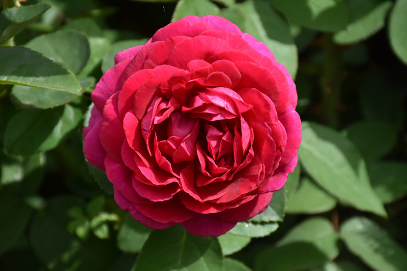 One of the darkest crimson-red roses you'll find, featuring loose and frilly flowers with a light fragrance produced in abundance over a long period on a spreading shrub; all roses need full sun and well-drained soil