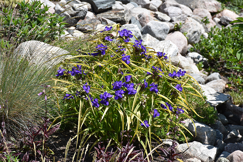 Blue And Gold Spiderwort will grow to be about 18 inches tall at maturity, with a spread of 18 inches. When grown in masses or used as a bedding plant, individual plants should be spaced approximately 14 inches apart. It grows at a fast rate, and under ideal conditions can be expected to live for approximately 10 years. As an herbaceous perennial, this plant will usually die back to the crown each winter, and will regrow from the base each spring. Be careful not to disturb the crown in late winter when it may not be readily seen! As this plant tends to go dormant in summer, it is best interplanted with late-season bloomers to hide the dying foliage.