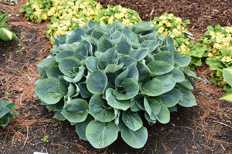 A smaller type of hosta, forms mounds of gray-blue leaves; provides beautiful texture and contrast to other plants; pale lavender spikes of flowers in late summer