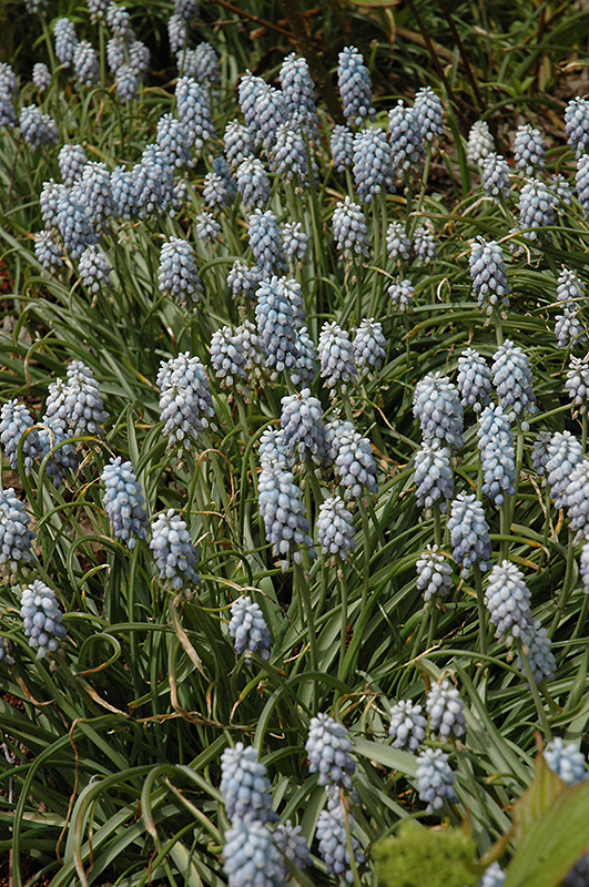 Dense spikes of urn shaped frosty blue flowers describe this fabulous eye catching cultivar; deep green foliage contrasts the blooms to a dramatic level; established bulbs produce leaves in the fall; tendency to naturalize quickly, easy to grow