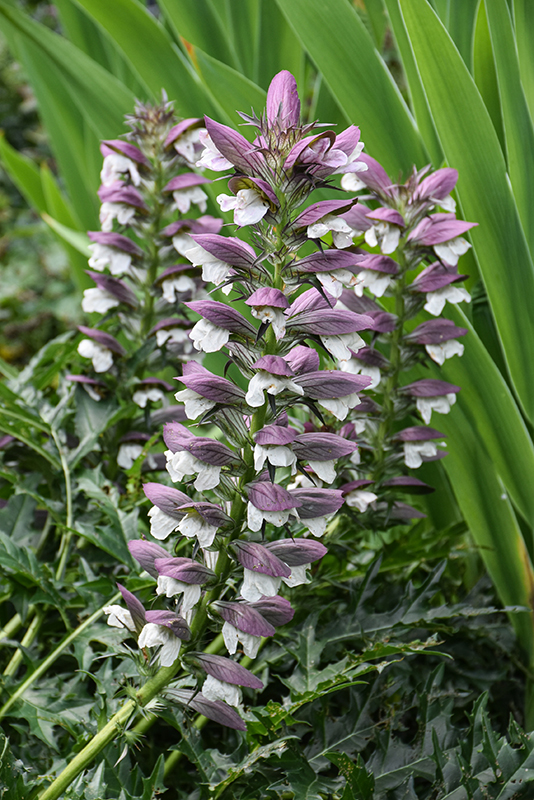 Bear's Breeches features showy spikes of pink hooded flowers with white overtones rising above the foliage in late summer. The flowers are excellent for cutting. Its attractive large spiny lobed leaves remain forest green in colour throughout the year.