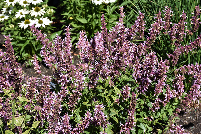 Airy spikes of pink to light pink flowers complement coarser textured perennials in the garden; attracts hummingbirds and other pollinators; aromatic licorice scented, bronze-green foliage