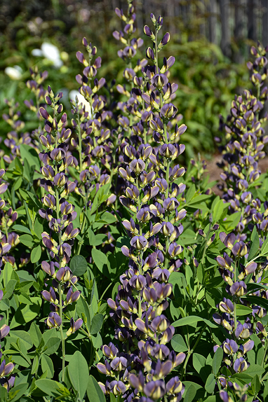 Twilite Prairieblues™ False Indigo has masses of beautiful spikes of purple pea-like flowers with yellow eyes rising above the foliage from late spring to mid summer, which are most effective when planted in groupings. The flowers are excellent for cutting. Its oval leaves remain bluish-green in colour throughout the season. The fruits are showy black pods displayed in late summer.