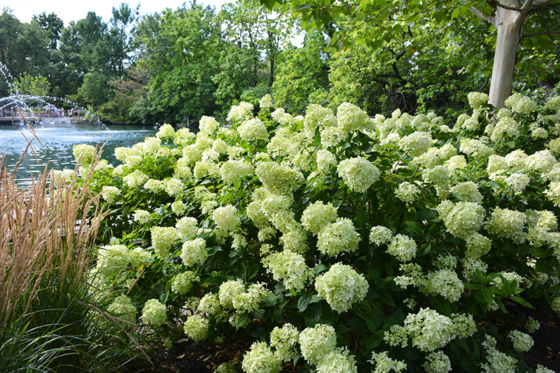 This compact shrub is a smaller form of 'Limelight'; features large conical flower heads that start chartreuse and change to pink in the cooler, late-season weather, lasting into fall