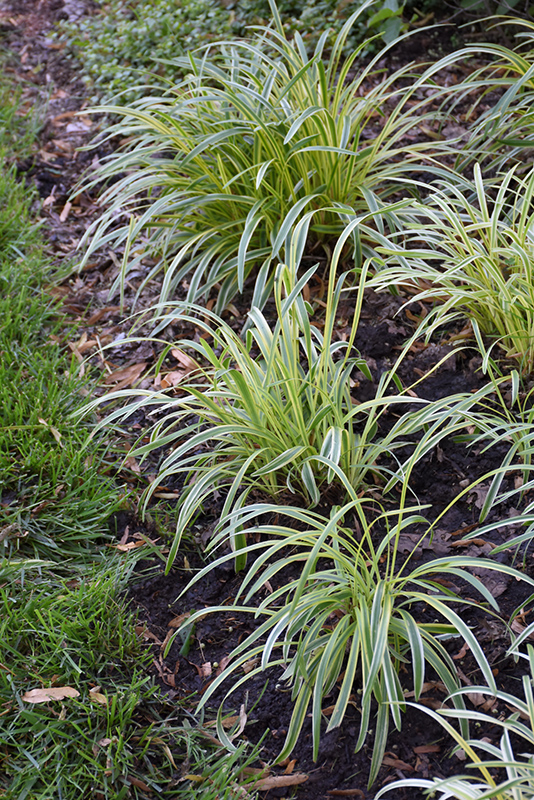 Silvery Sunproof Variegated Lily Turf will grow to be about 12 inches tall at maturity, with a spread of 18 inches. Its foliage tends to remain dense right to the ground, not requiring facer plants in front. It grows at a fast rate, and under ideal conditions can be expected to live for approximately 10 years. As an herbaceous perennial, this plant will usually die back to the crown each winter, and will regrow from the base each spring. Be careful not to disturb the crown in late winter when it may not be readily seen!