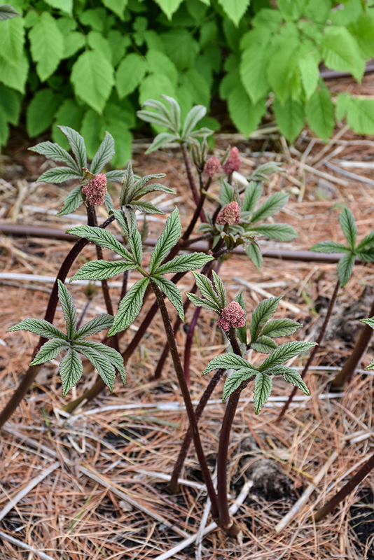 Chocolate Wings Rodgersia will grow to be about 24 inches tall at maturity extending to 3 feet tall with the flowers, with a spread of 4 feet. When grown in masses or used as a bedding plant, individual plants should be spaced approximately 3 feet apart. It grows at a slow rate, and under ideal conditions can be expected to live for approximately 10 years. As an herbaceous perennial, this plant will usually die back to the crown each winter, and will regrow from the base each spring. Be careful not to disturb the crown in late winter when it may not be readily seen!