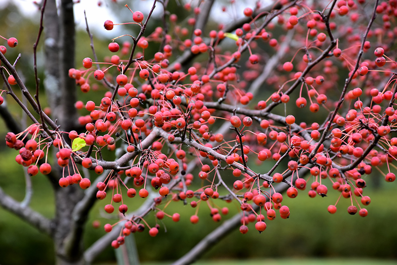 An exceptionally showy ornamental tree that's bathed in white flowers in spring and colorful orange-red fruit in fall, spreading habit of growth, hardy; makes a wonderful feature tree in the landscape, needs well-drained soil and full sun